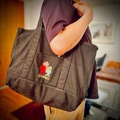しびねこがちょこんとついた大容量のトートバッグができました。